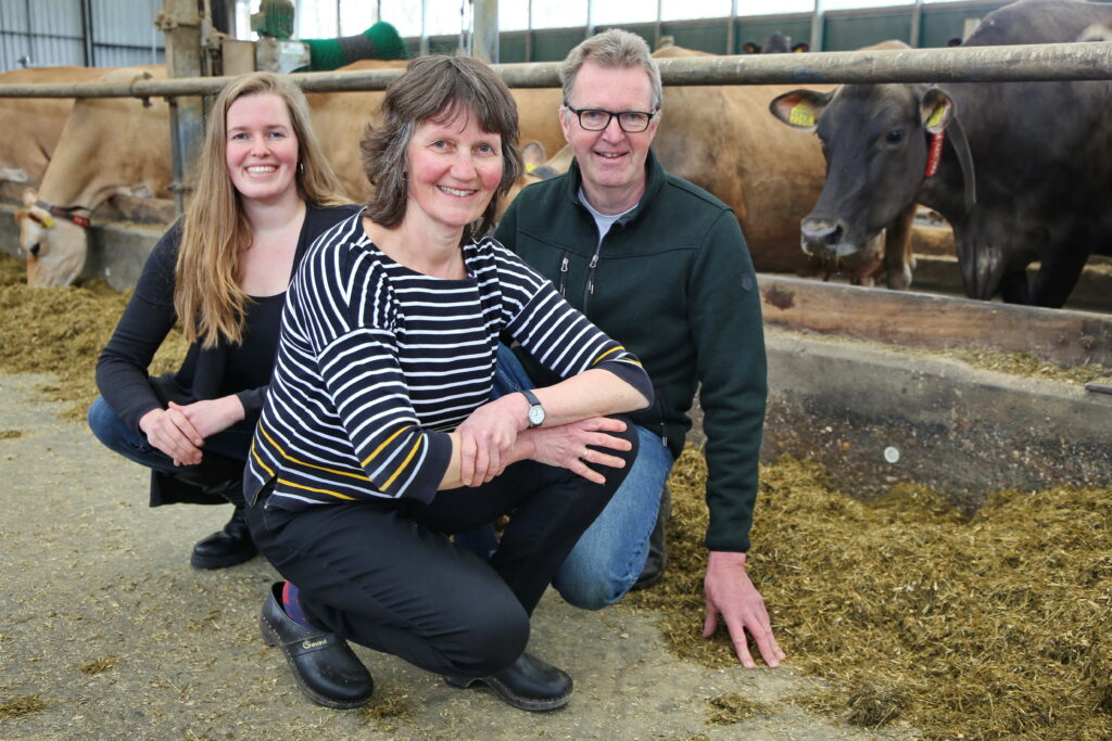 Naast de nieuwsgierigheid naar de daadwerkelijke efficiëntie van de Jersey noemt de familie Oegema verschillende redenen op waarom ze het interessant vinden om deel te nemen. ‘We hebben altijd de insteek gehad om zoveel mogelijk kansen binnen onze bedrijfsvoering te benutten’, zegt Henk. ‘We zijn gestart met 17 hectare land en 65 melkkoeien. Door de jaren heen hebben we het bedrijf kunnen uitbreiden naar 58 hectare en leveren we jaarlijks bij 8,5 ton melk aan Friesland Campina onder het keurmerk ‘On the to PlanetProof’’, somt Henk op. Ze melken hun veestapel met melkrobots en passen veel beweiding toe. Allemaal bewuste keuzes. Nu zien ze het als een kans hun bedrijf verder te ontwikkelen met als doel de kringloop zoveel mogelijk te sluiten. Binnen het project Koeien & Kansen denken ze hun kennis op het gebied van kringlooplandbouw te kunnen vergroten. ’We willen graag ons bedrijf verder optimaliseren en daarbij rekeningen houden met de wensen uit de maatschappij’, merkt Maike op. Zo willen ze de komende tijd hun focus leggen op meer eiwit van eigen land en aandacht hebben voor biodiversiteit. Daarnaast zien ze het als een kans om aandacht te genereren voor hun Jerseys binnen de sector en samen met het onderzoek mogelijk in kaart te brengen hoe efficiënt de Jersey ruwvoer daadwerkelijk kan omzetten in melk.