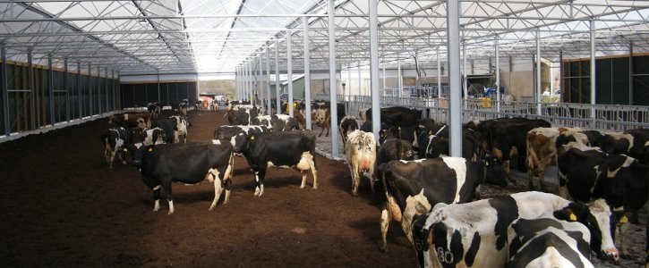 De nieuwe ‘open’ koeienstal levert een belangrijke bijdrage aan het dierenwelzijn en het werkplezier. De stal heeft negen puntdakjes met zeil. Hierdoor valt er veel lucht en licht naar binnen. In de zomer heb je weinig last van de warmte er is namelijk altijd wind. De koeien worden gehouden op stro in een vrijloopgedeelte. Het eerste jaar was de stal gevuld met compost. Vanuit de zuivelfabriek werd dit aan banden gelegd. De ondernemers hebben uiteindelijk bewust gekozen voor stro. De koeien blijven schoner en zakken minder weg dan bij compost. Een bijkomend voordeel is dat er nu geen extra fosfaat wordt aangevoerd en de bodem makkelijker te bewerken is. Qua diergezondheid is er veel winst behaald. De koeien hebben veel bewegingsruimte en de gemiddelde leeftijd van de dieren is flink gestegen. Zij houden nu nog maar 4 stuks jongvee aan op 10 melkkoeien. Het afgelopen jaar hebben ze zelfs vee verkocht, terwijl ze toch in omvang zijn gegroeid.
