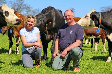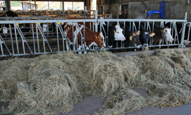 De veestapel van Oosterhof is heel divers. Zijn koeien zijn kruislingen Holstein x Fleckvieh. ‘’Deze koe kan gras efficiënt kan omzetten in melk’’, meent Peter Oosterhof. Deze koeien kunnen veel ruwvoer opnemen en gaan dan ook dag en nacht naar buiten, zodra de weeromstandigheden het toelaten. Wel 300 dagen per jaar. Maar liefst 80 procent van zijn koeien krijgen in het voorjaar een kalf. ‘’Dat is een bewuste keuze, dan kunnen ze direct het kruidenrijke grasland in en melk produceren’’, merkt hij op.