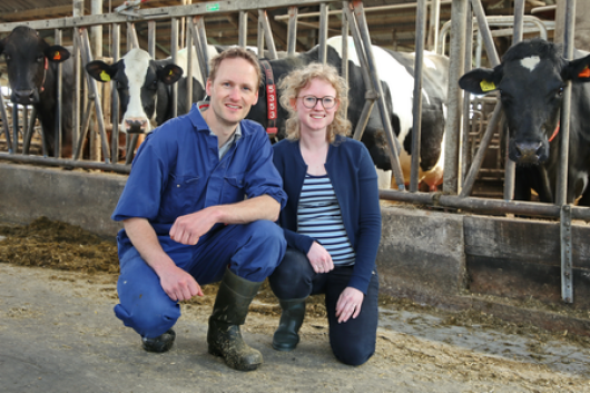 Binnen zijn bedrijfsvoering kiest hij graag voor een integrale aanpak, waarbij volgens hem eiwitefficiëntie de sleutel is. Zo is hij bijvoorbeeld minder eiwit gaan voeren. Ook past hij sinds 4 jaar weer weidegang toe. Dat levert hem 1,5 cent extra melkgeld op. “Dat is natuurlijk mooi meegenomen, maar ik voelde ook de maatschappelijke druk om de koeien weer naar buiten te doen. Bovendien zorgt de opname van vers gras voor een betere eiwitbenutting en dat draagt weer bij aan die efficiëntie’’, gaat hij verder. Hij vindt het leuk om te experimenteren binnen zijn bedrijfsvoering. ‘’Door mijn deelname aan Koeien & Kansen hoop ik nieuwe kennis en kunde te ontwikkelen, die niet alleen positief bijdragen aan de ontwikkeling van mijn bedrijf, maar ook aan de sector’’, merkt Thijs tot slot op.