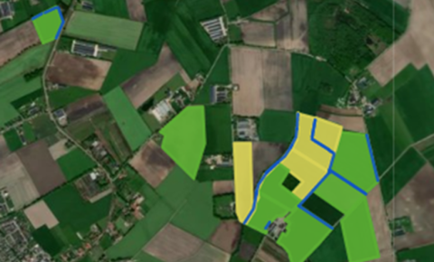 We zoomen in op het bedrijf van Adrian Houbraken in Bergeijk, Noord Brabant. Adrian heeft in het beekdal zowel natte als droge percelen (figuur 1).